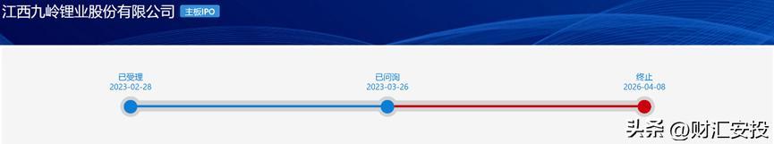 2023年2月28日,上交所受理了九岭锂业主板上市的肯求文献,2023年3月26日,上交所发出审核问询,不外九岭锂业在猬缩肯求文献并未进行复兴。